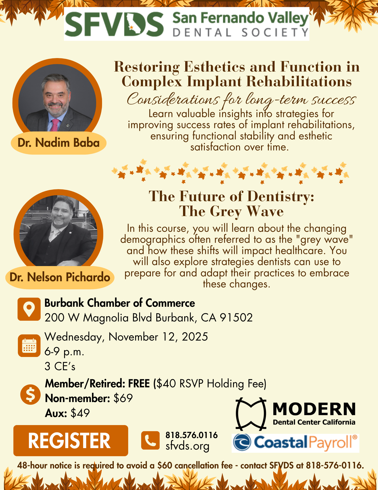 There will be focused exploratory conversation on how the Silver Tsunami, demographic shifts, and Geroscience, will affect non-acute care, such as dentistry.